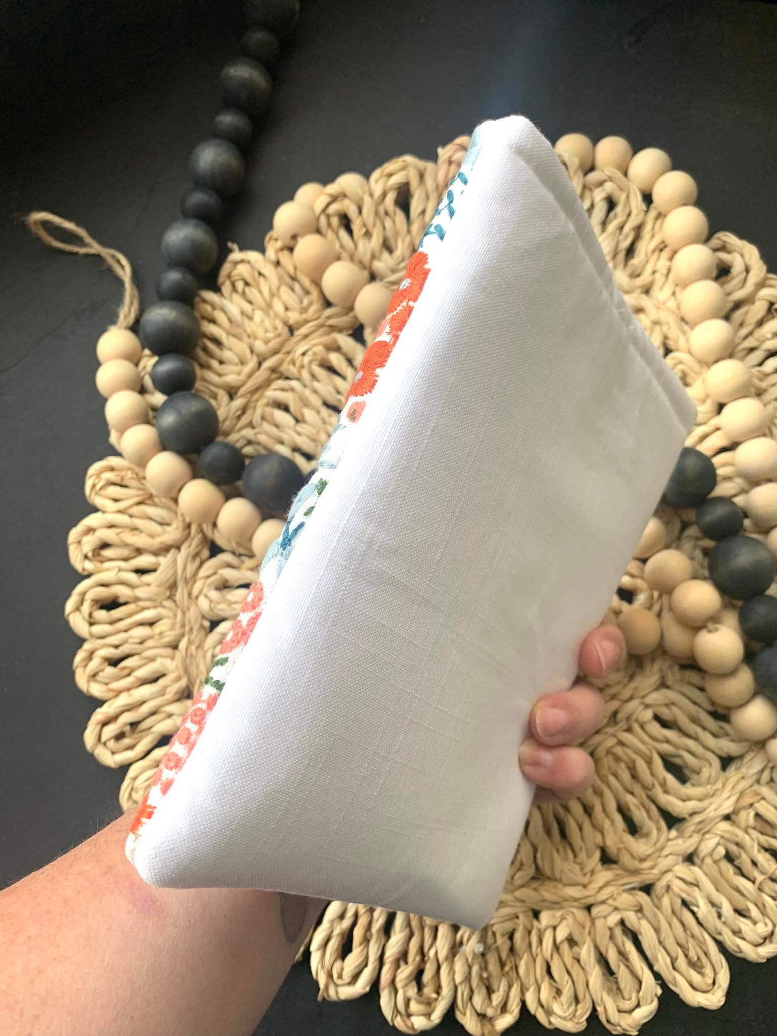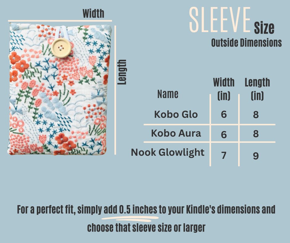 Kindle Nook Sleeve, Blue Pink Floral Embroidered Protective eReader Cover Button Snap Closure Soft Custom Fit Handmade Stitched Pouch